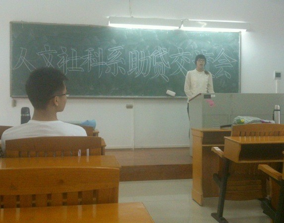 (本站讯 人文社科系)10月17日下午,为了让同学们对助学金和学生贷款的申请有更深的了解,人文社科系在c304举行助贷交流会。出席本次交流会的有负责人丁莹、黄粤嫒同学,以及12、13级有意愿申请助贷的学生。