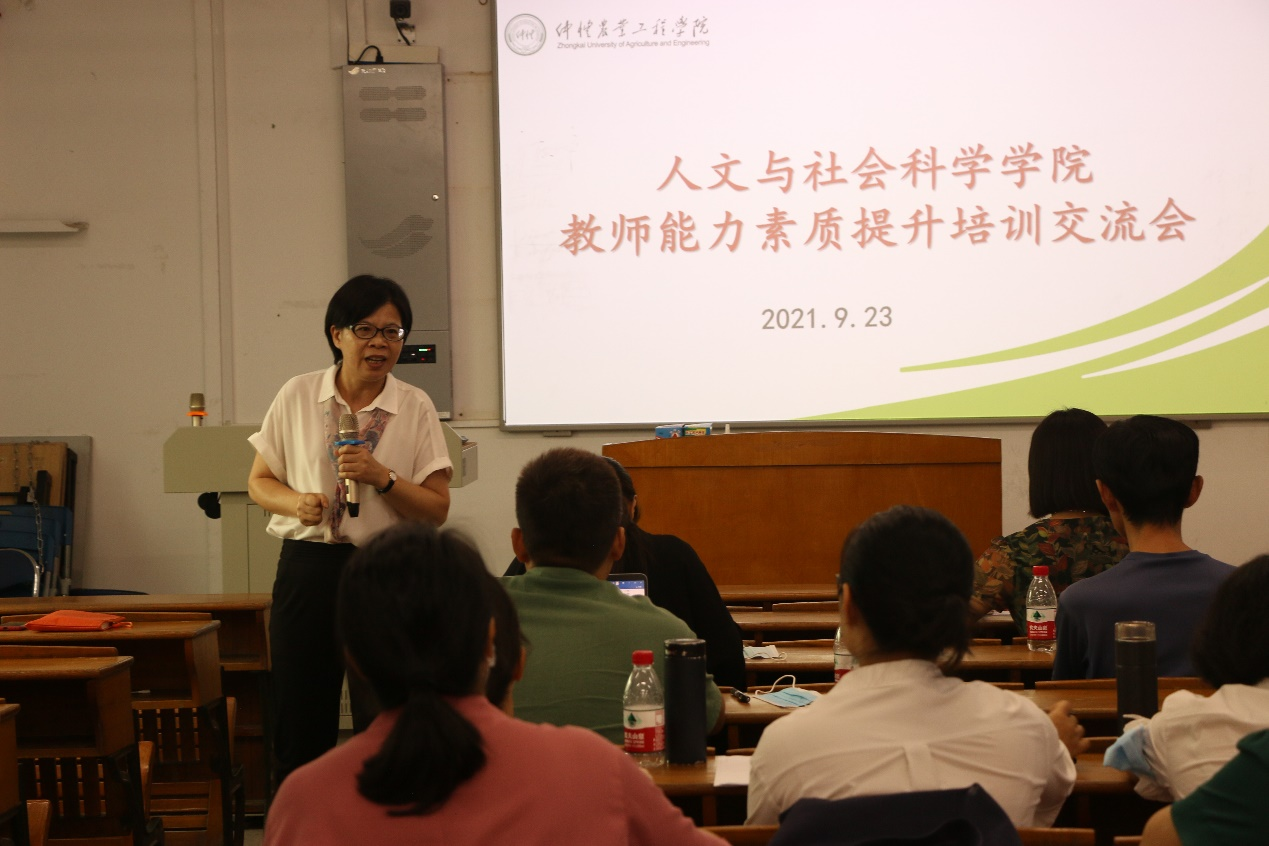为进一步提升学院教工的能力素质,更加有力推动各项工作发展, 9月23日下午,在教学楼603,人文与社会科学学院举办教师能力素质提升培训交流会,安排教工党支部书记孙林、公共管理系主任钟晓华、文化产业管理系主任刘汉波三位教师分别从不同的角度分享经验。学院全体教职工参加培训,院长曾秀兰主持会议。
