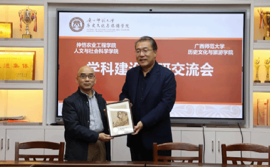 走访广西师范大学历史文化与旅游学院时,双方围绕文旅专业的内涵探索、课程赛事的有机结合、地方文化资源的教学转化、跨学科平台建设等共同关切展开讨论。学院教师主动分享了学院在农业文化、乡村振兴和文化实践方面的积累,并就如何依托学校特色打造人文社科增长点,向对方虚心求教,获得了具有操作性的建议。