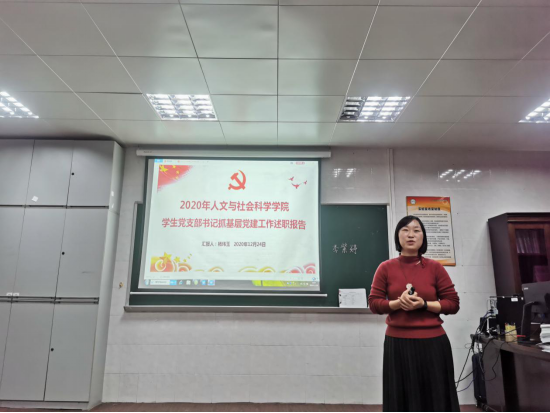 在学生党支部书记述职评议会上,杨玮玉主要从支部概况、党建的形式和工作情况;本人发挥党员先锋模范作用、增强党性修养,激发党建活力以及强化支部理论教育等方面展开述职。此外,杨玮玉提出,2021年学生党支部将主要在扎实推进 “党建工作样板支部”相关工作、打造“人文先锋队”党员志愿服务品牌等两个方面来开展,创新党支部工作。