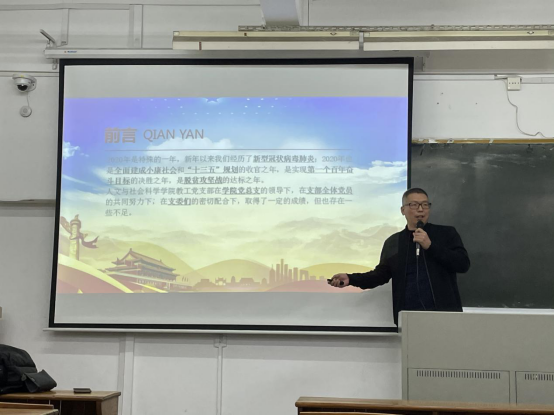 杨瑞香在会上肯定了教工支部一年工作成果,根据学校党委的要求,分析了2021年基层组织党建的重点和着力点,并对支部的工作和全体党员提出要求。