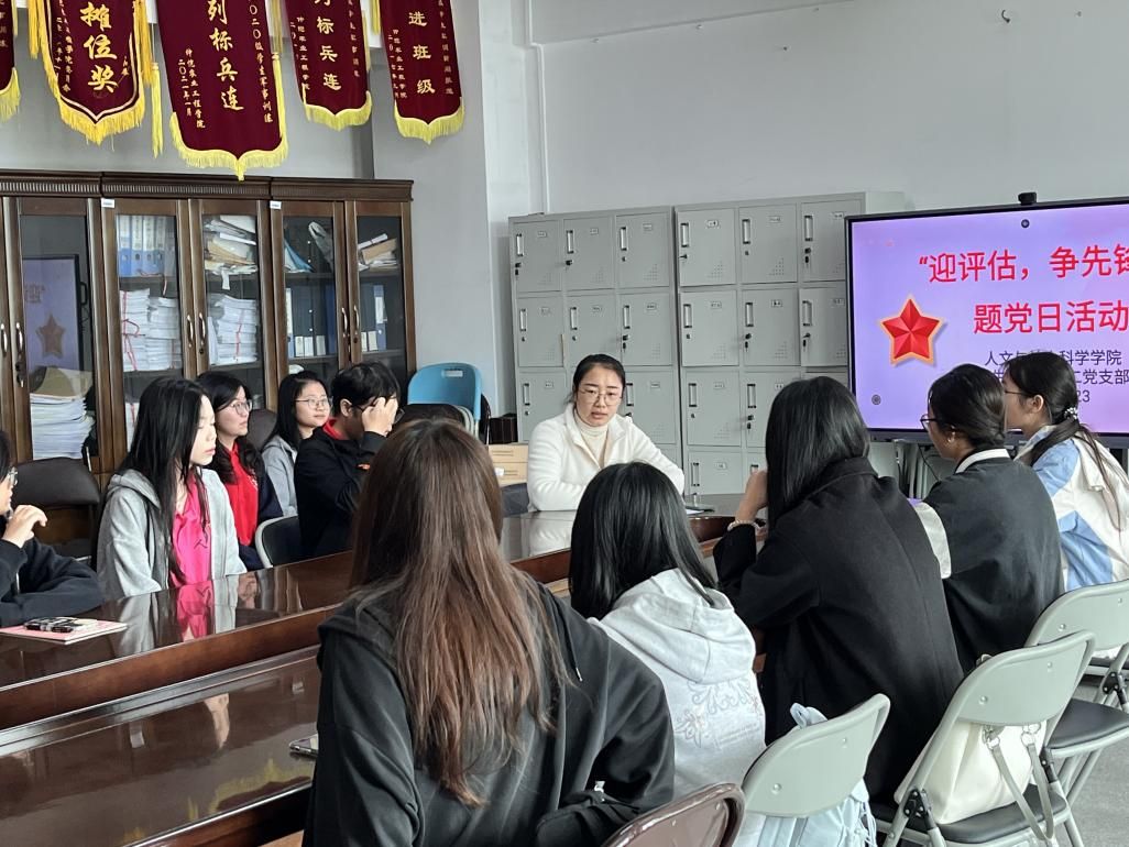 为迎接我校本科教育教学审核评估,进一步统一思想、凝聚共识,增强学生党员的责任意识与模范带头作用,10月23日中午11:30,我院学生第一、第二党支部在行政楼西604联合开展“迎评估,争先锋”知识问答主题党日活动。学生第一党支部副书记赵国英、学生第二党支部副书记叶佳琪以及全体支部党员和发展对象参加了本次活动。