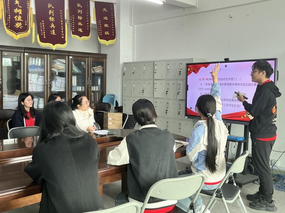 当前,我校正处于本科教育教学审核评估的关键阶段。为营造“人人关心评估、人人参与评估”的浓厚氛围,增强党员对评估知识的理解与掌握,提升迎评促建的自觉性与主动性,特组织开展本次“迎评估,争先锋”知识问答主题党日活动。通过以赛促学、以学促行,引导广大党员在评估中走在前、作表率,带动全体同学共同为学校高质量发展贡献力量。