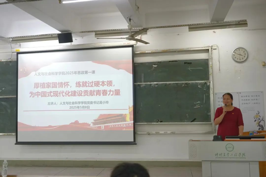 课上,吴小玲围绕“厚植家国情怀,在融入大我中奋进”、“练就过硬本领,在锤炼小我中奋进”、“将个人成长融入国家发展,为中国式现代化建设贡献青春力量”三个方面展开讲述,同时结合实际,对同学们提出了三点要求:一是坚定理想信念,知史爱党爱国。同学们要志存高远,在实现大我中成就小我;要培养全球视野,传递中国声音。二是夯实专业基础,提升学术能力。同学们要强化创新能力,挖掘跨界发展潜力;锤炼实干能力,解决实际问题;培养数字素养,适应智能时代。三是投身实践热土,彰显青春担当。作为青马学员,更应将个人理想融入国家发展大局,以 “国之所需” 为 “心之所向”,在乡村振兴、社会治理等领域中勇挑重担,主动作为,为推动中国式现代化建设贡献青春力量。