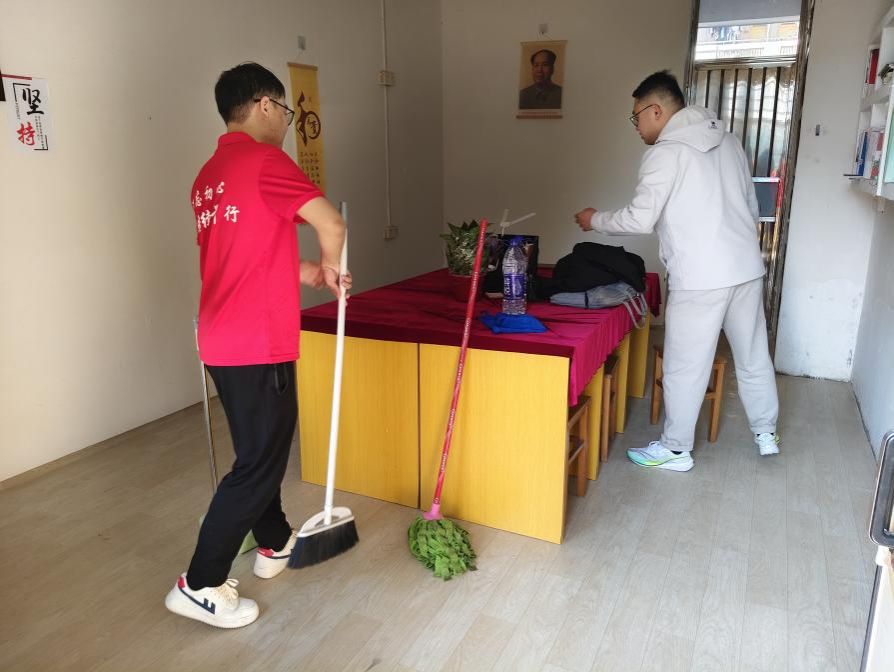 动员结束后,全体党员手持扫帚、拖把、抹布等工具,以北区学生社区功能室、班主任工作室为核心开展全方位卫生清扫工作。大家迅速分组、各司其职,仔细擦拭室内的桌椅、门窗、储物柜,认真清扫地面、清理角落的灰尘与杂物,规整室内的各类物资与器具,对卫生死角进行重点清理。活动中,党员们不怕脏、不怕累,相互配合、干劲十足,用实际行动诠释着雷锋精神的时代内涵,成为社区里一道亮丽的风景线。经过近两小时的辛勤劳动,社区功能室、班主任工作室环境焕然一新,各类物品摆放整齐有序。